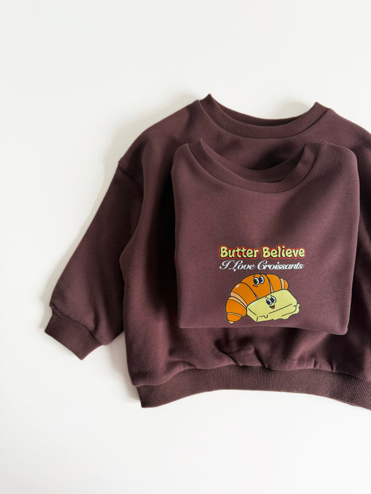 Butter Believe I Love Croissants Sweatshirt in Chocolate